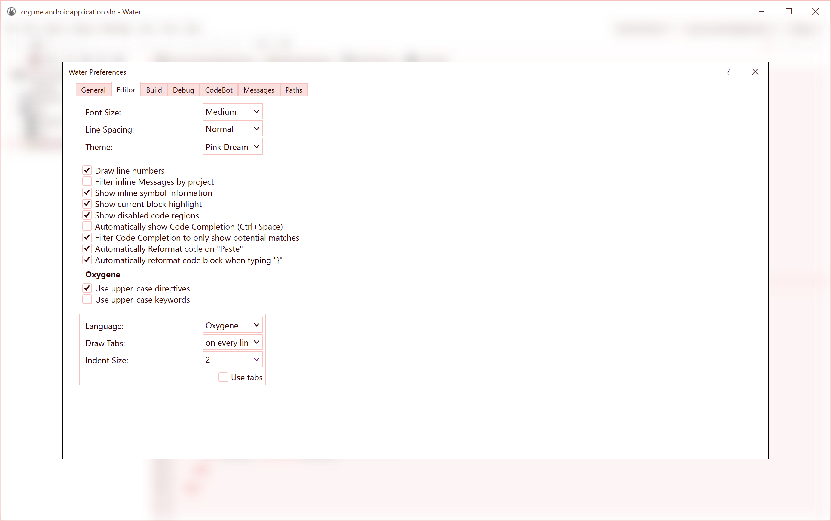 This weeks build of Water, our Windows IDE for Elements adds an exciting new visual feature that many of you have been asking for for a long time: themes!